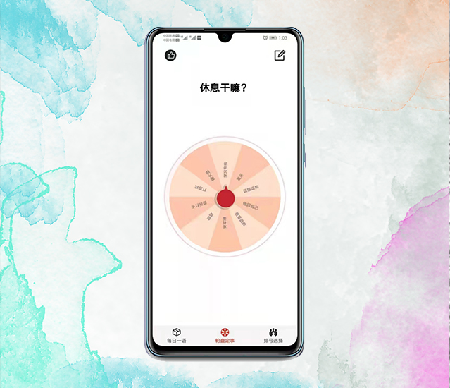本应用为有选择困难症总纠结今天吃什么的朋友而作。能够用转盘轮盘辅助做决定,用抽签幸运数字来缓解焦虑,多人场合不用猜拳石头剪刀布随机数就能摇号抽奖。
